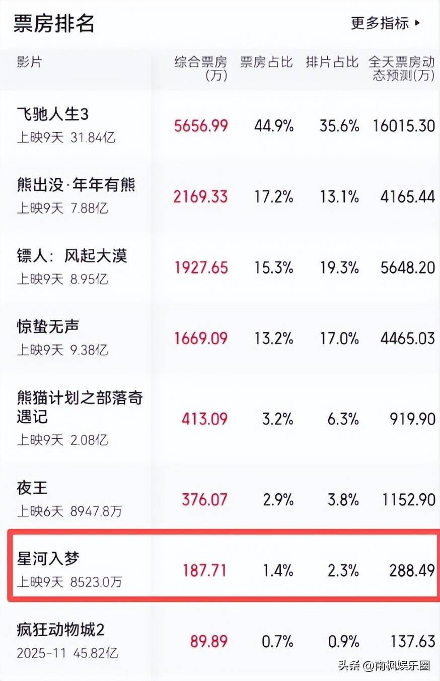 《星河入梦》的预测票房甚至才将将破亿。